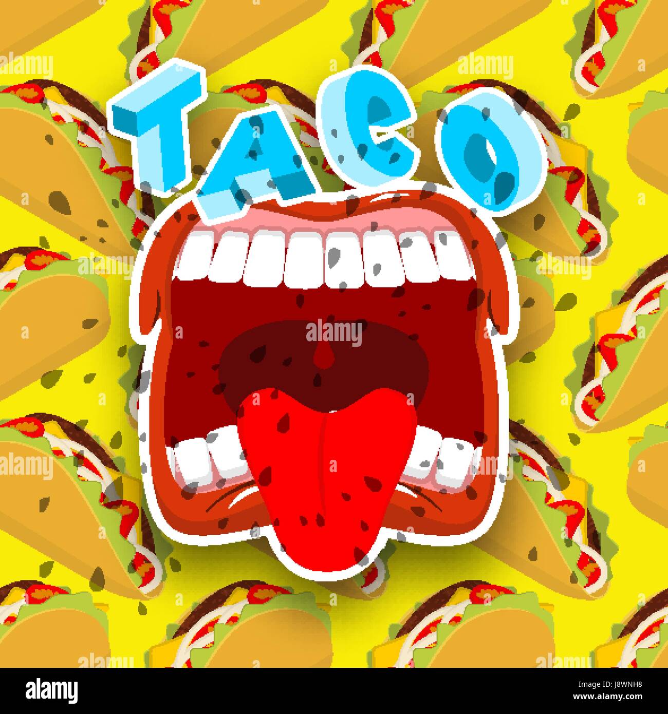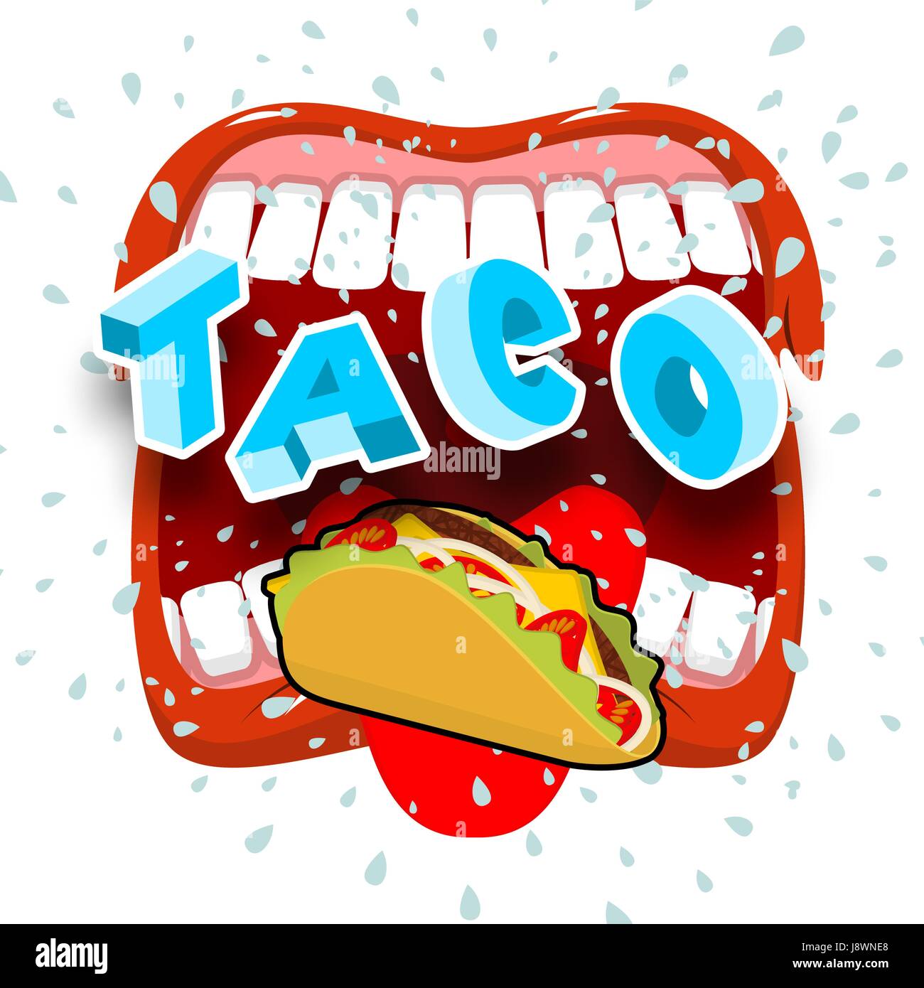 Taco Mexican Food aiguë. Ouvrez votre bouche et langue protubérante Image Vectorielle Stock - Alamy