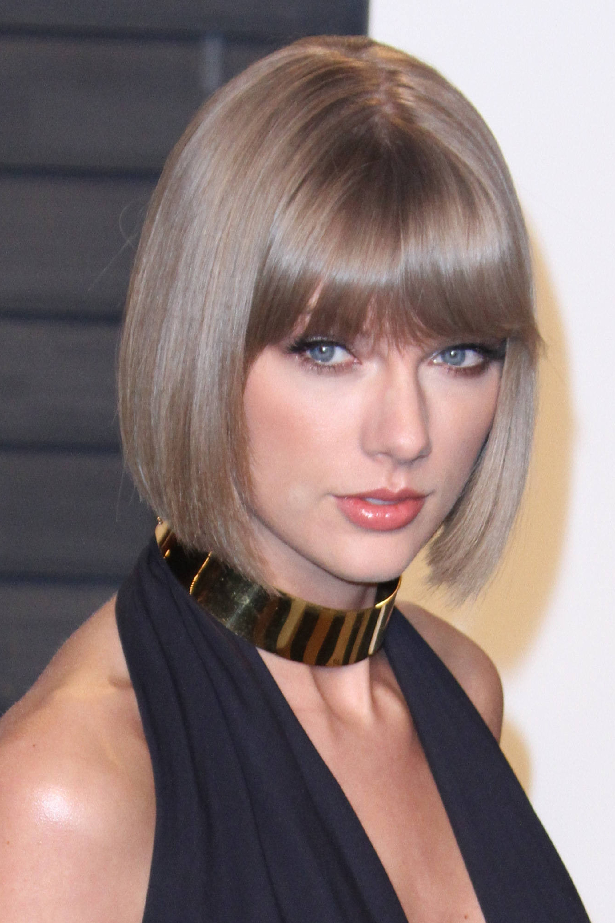 Carré plongeant court et classique avec frange de Taylor Swift ...