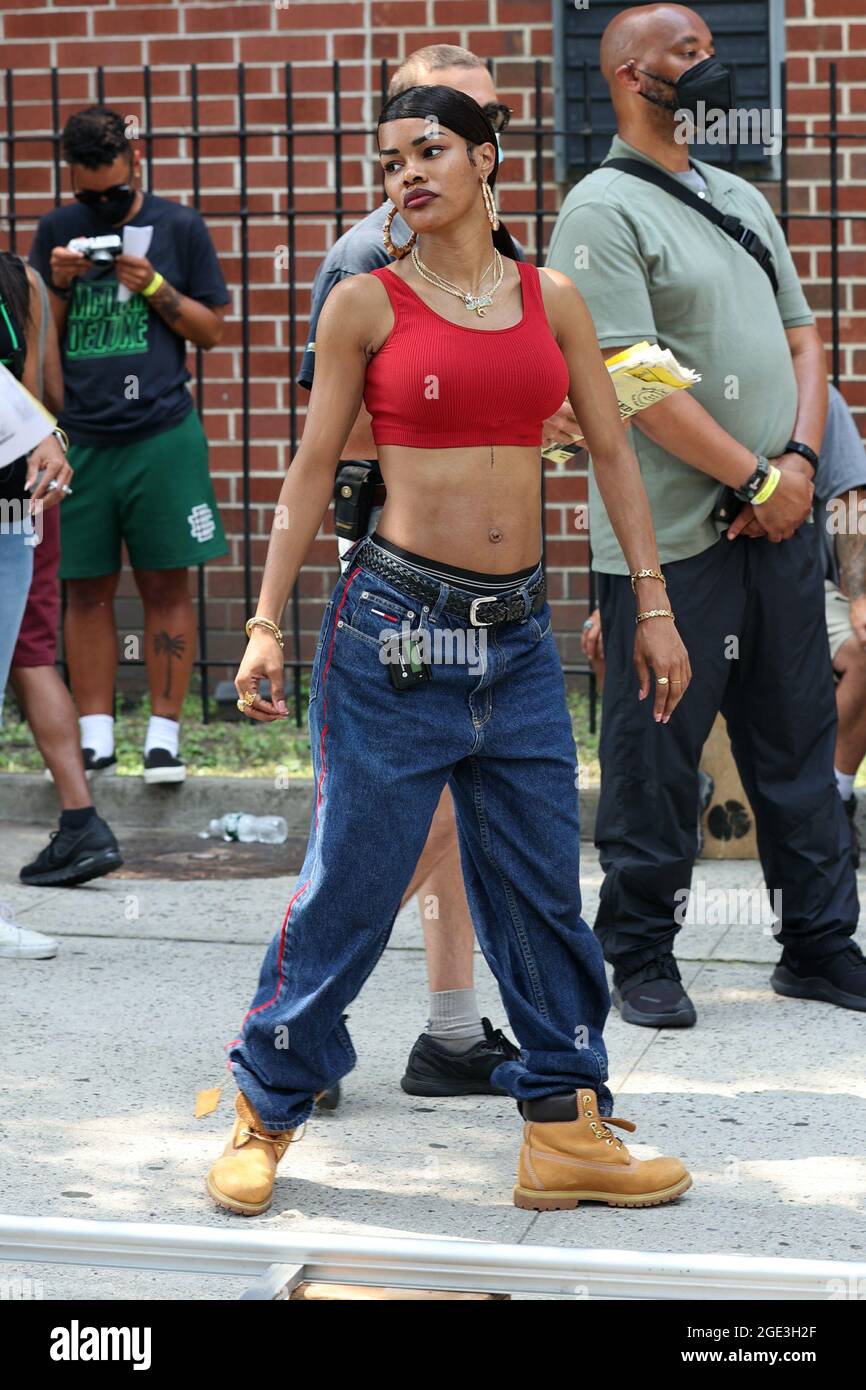 New York - NY - 20210727 Teyana Taylor shows off her amazing abs on set of A Thousand and onetaking place in Harlem. -PICTURED: Teyana Taylor Jose Perez Stock Photo - Alamy
