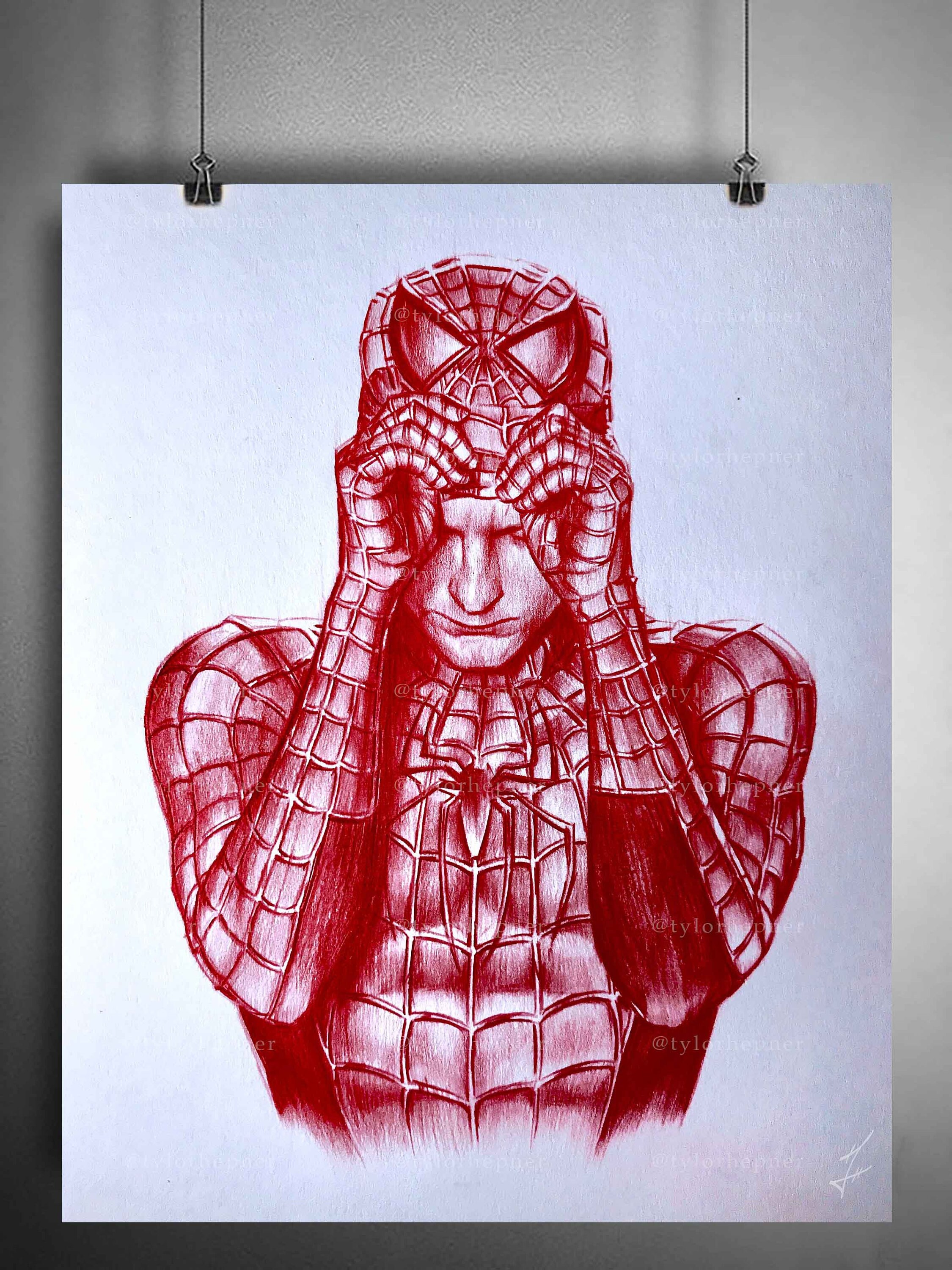 Impression rigide for Sale avec l'œuvre « Tobey Maguire pleure » de l'artiste LUSTICKNEY | Redbubble
