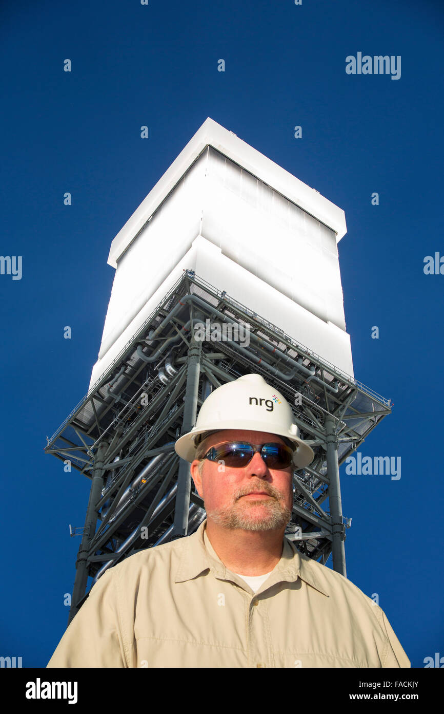 Une tour solaire à la centrale thermique solaire Ivanpah dans le désert de Mojave en Californie est actuellement la plus grande centrale solaire thermique pla Photo Stock - Alamy