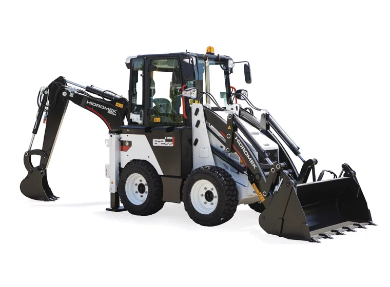 Tractopelle HMK 62 avec relevage pour se transformer en tracteur