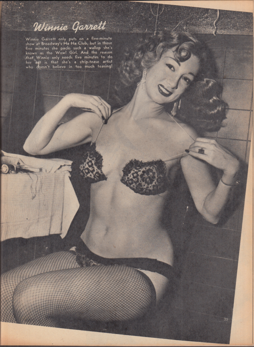 Burlyqnell - Vintage Photos of Burlesque Dancers - Winnie Garrett: signed, vintage 8x10 photo A popular burlesque dancer in the 1940s through 1950s, Winnie was a multi-talented woman. She was one of