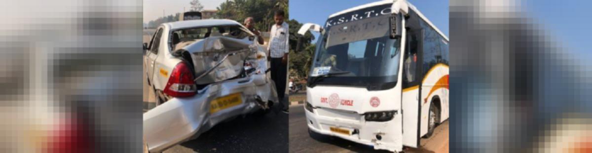Kapu: Car crushed in collision with KSRTC bus | udayavani