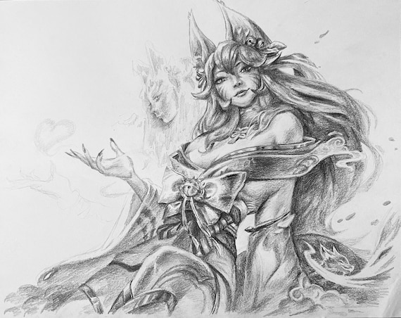 League of Legends Spirit Blossom Ahri Splashart Drawing - Etsy