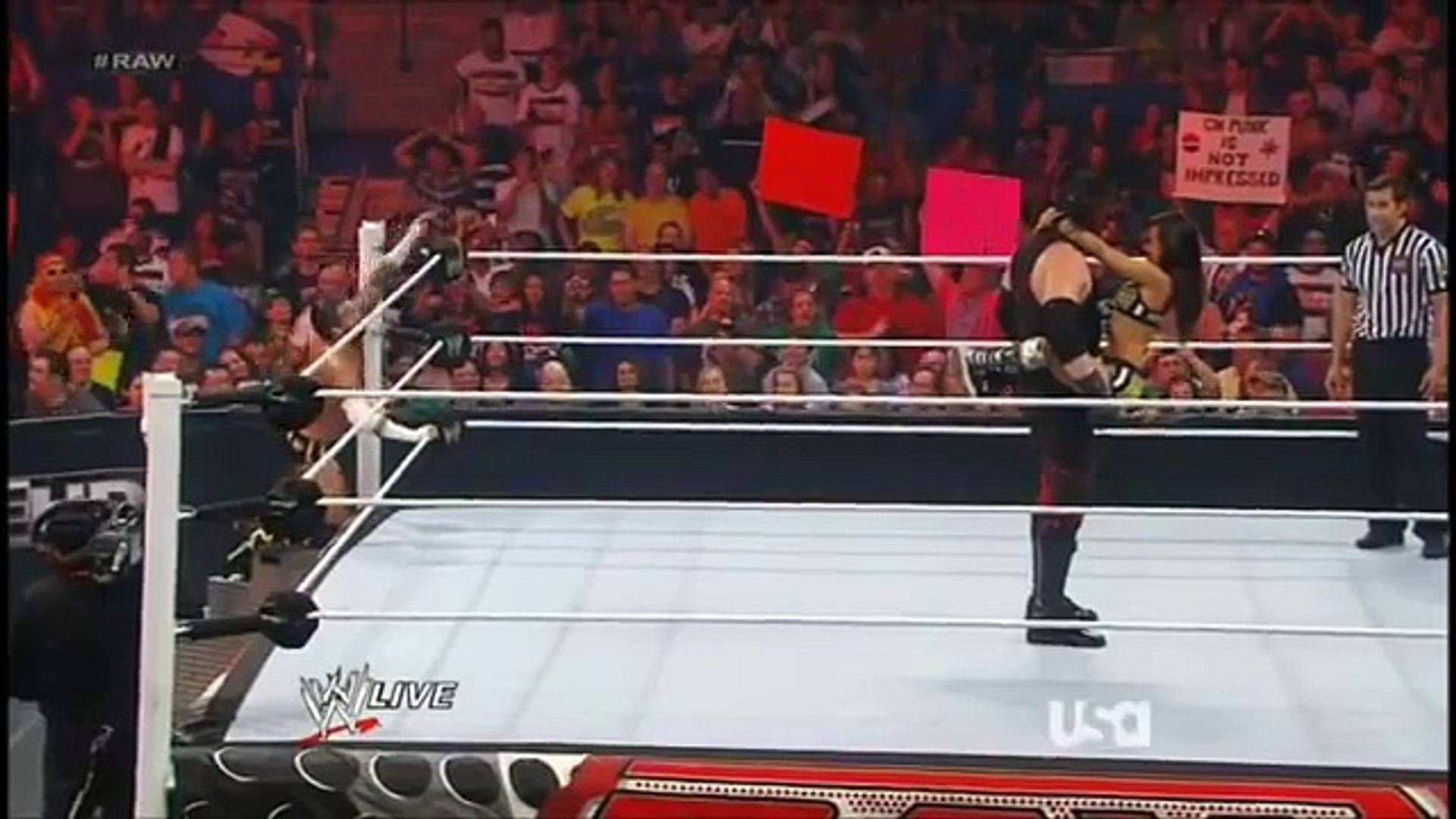 AJ Lee Puts CM Punk & Daniel Bryan Though Table - WWE RAW 7/2/12 ...