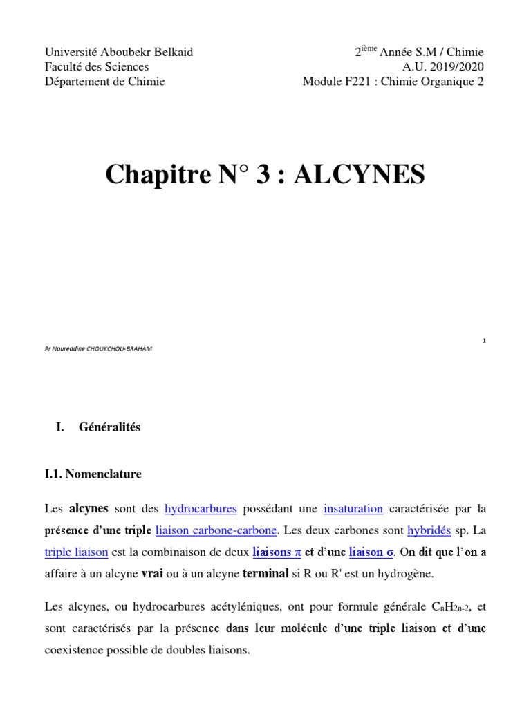 Les alcynes - cours de chimie organique - Gérard Dupuis -Lycée Faidherbe LILLE