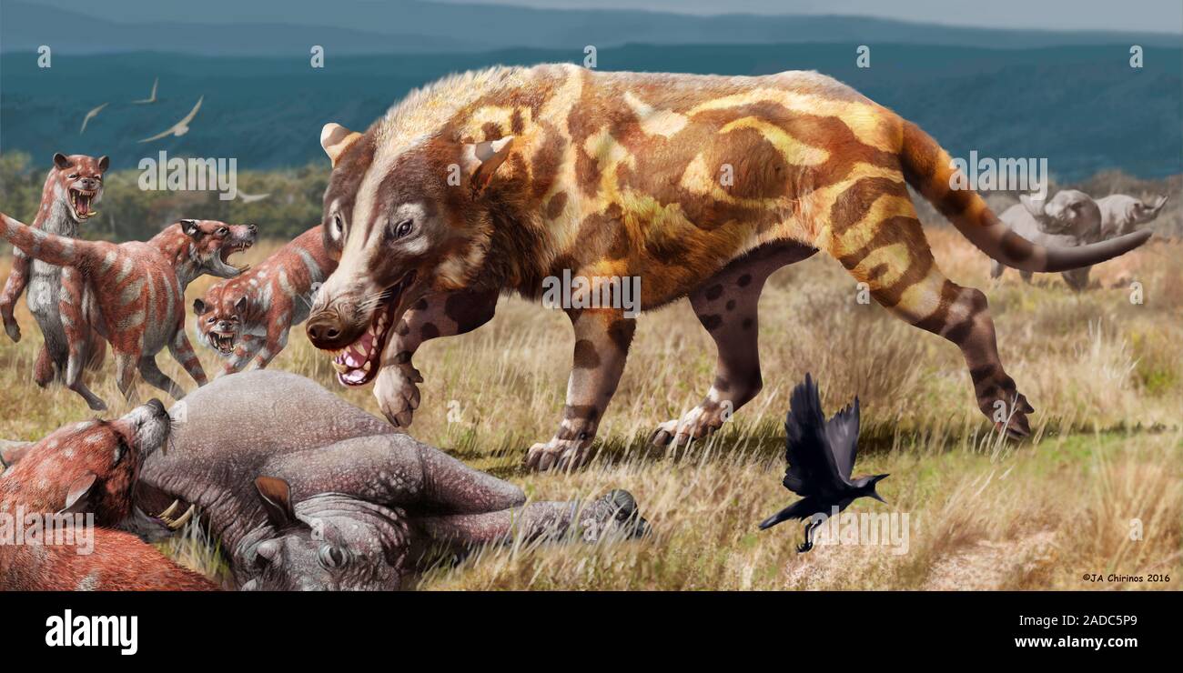 Illustration of the prehistoric mammal Andrewsarchus mongoliensis with prey. This carnivorous ungulate (hoofed-animal) lived during the Middle Eocene Stock Photo - Alamy