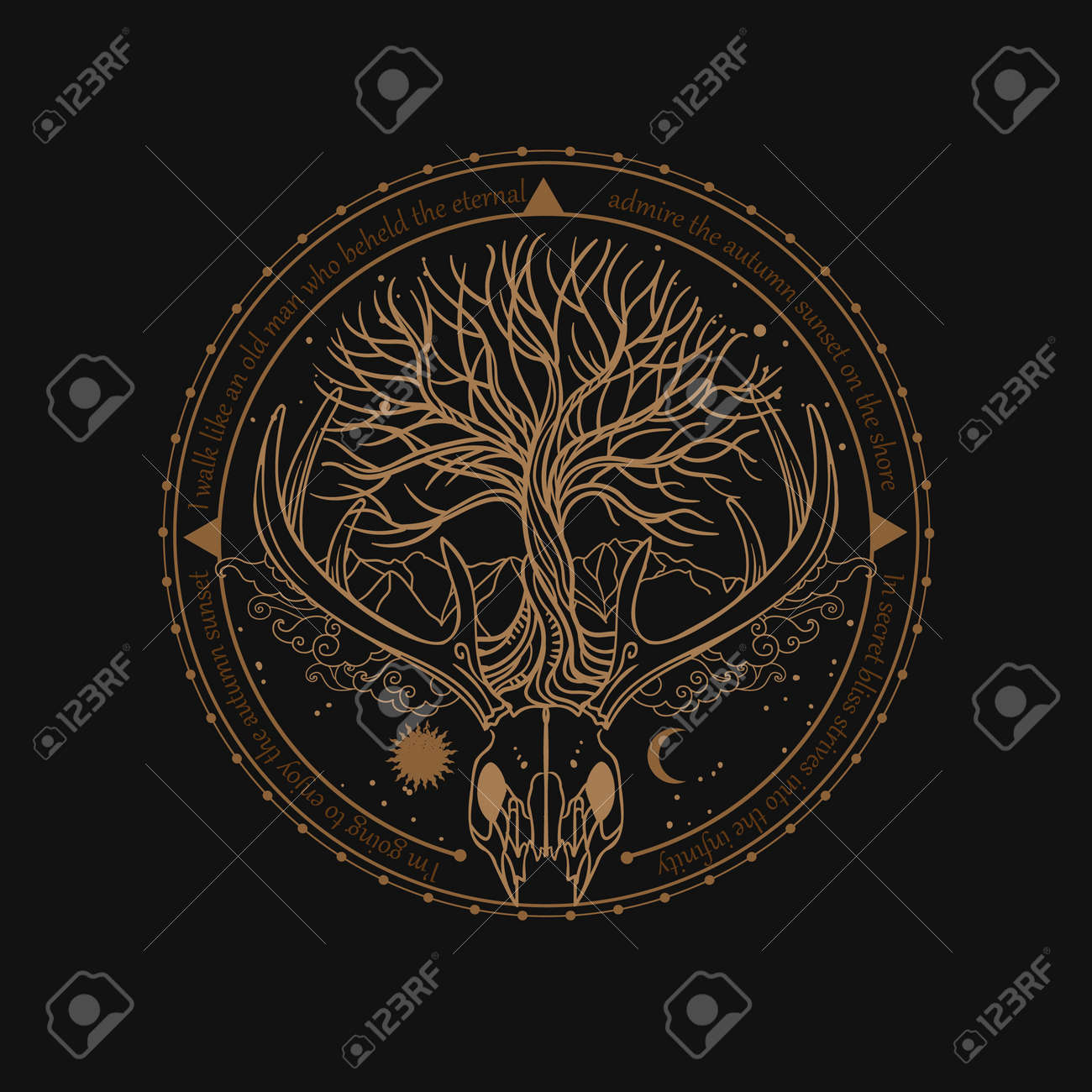 Crâne Et Arbre De Cerf Comme Symboles De La Vie Et De La Mort. Illustration Vectorielle Clip Art Libres De Droits, Svg, Vecteurs Et Illustration. Image 182113080