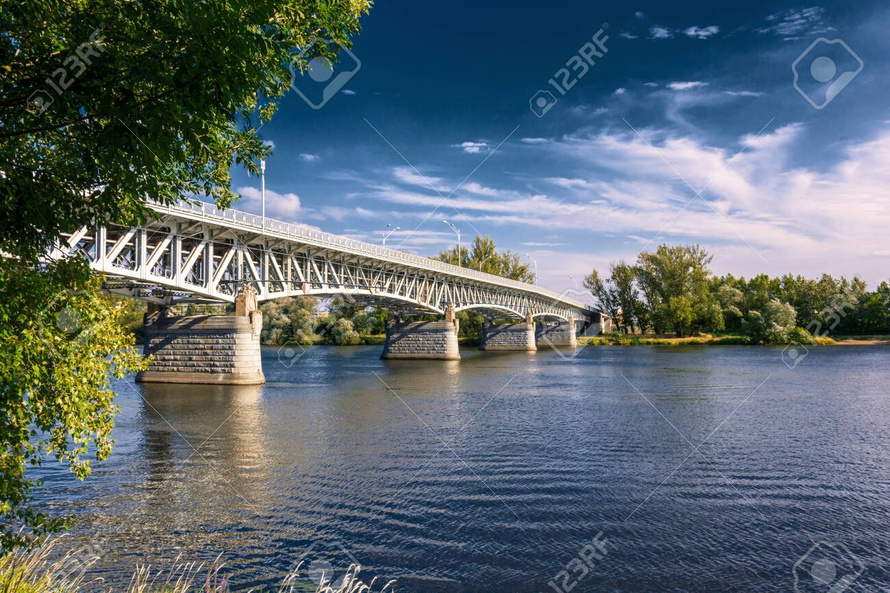 Pont En Arc D'acier Traversant La Rivière Msta En été Photo stock - Image du cavalier, passerelle: 281959196
