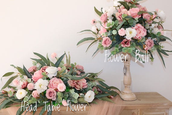 Arreglo de mesa de boda rosa rosa polvoriento y rubor, flor de ...
