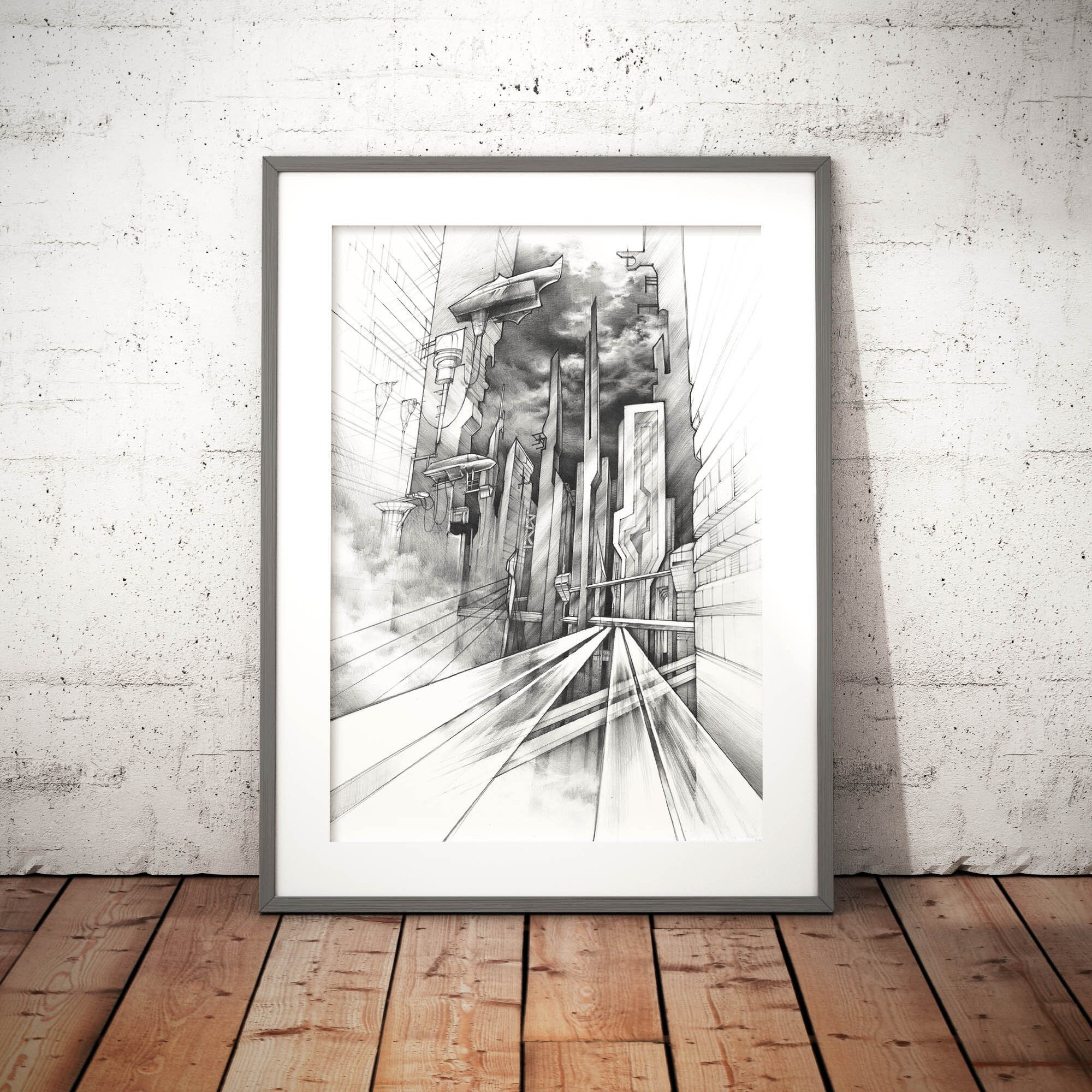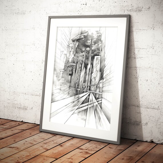 Ville du futur PRINT par Katarzyna Kmiecik / impression de croquis au crayon, impression futuriste, architecture du futur, œuvre dart réaliste, concept art - Etsy France