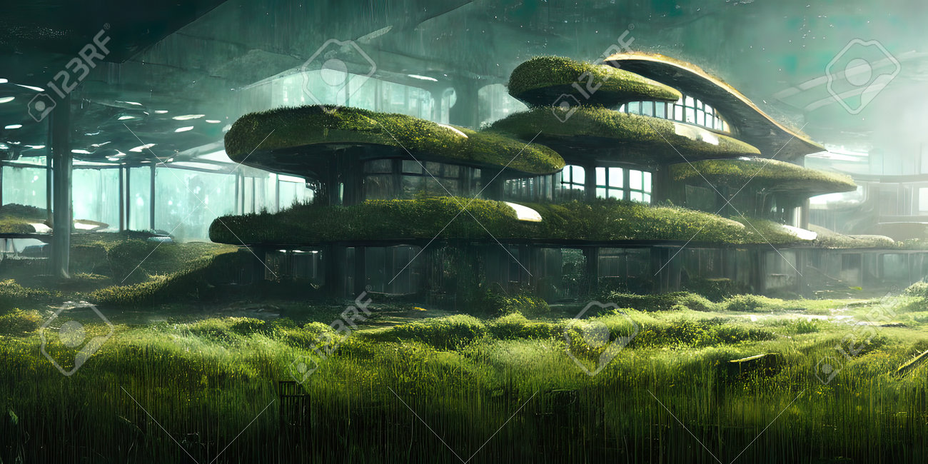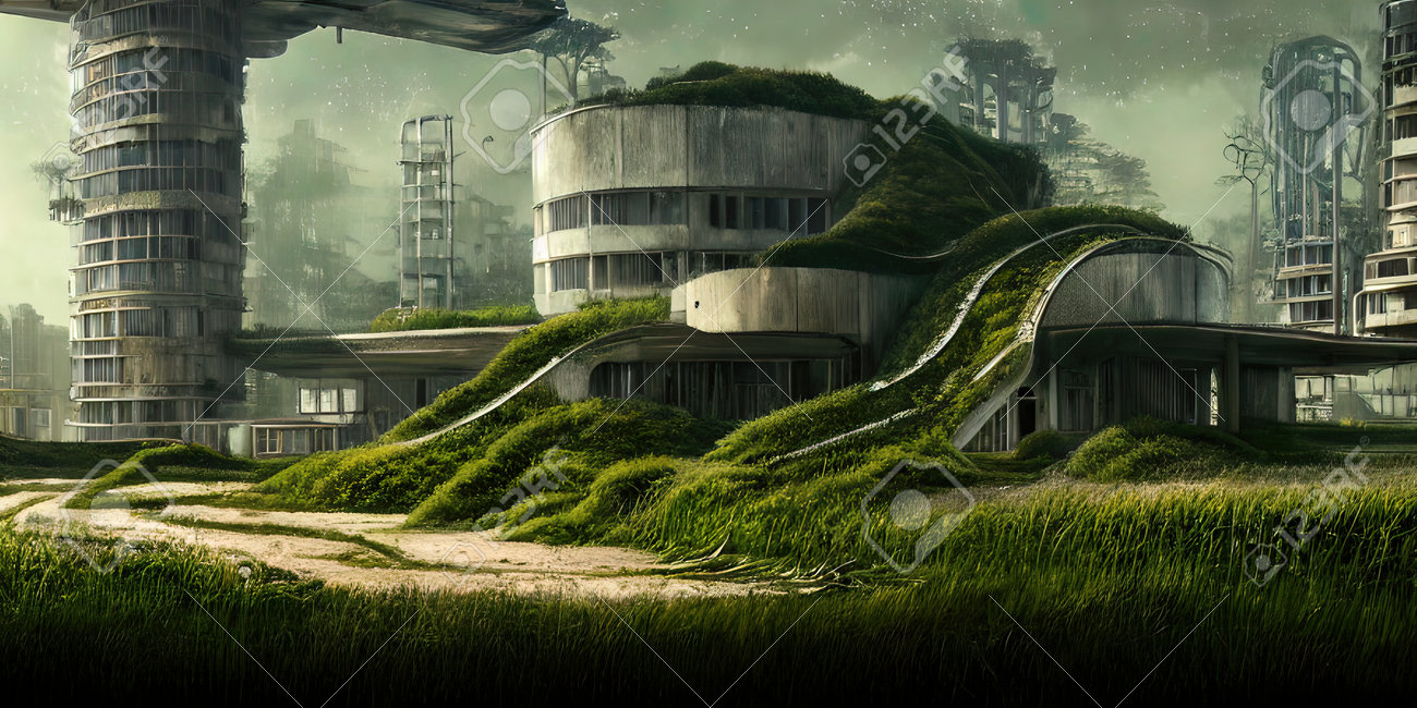 Architecture Du Futur, Une Ville En Ruine Envahie De Verdure. Art Conceptuel, Idée D'inspiration. Banque D'Images et Photos Libres De Droits. Image 191983352