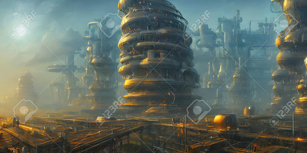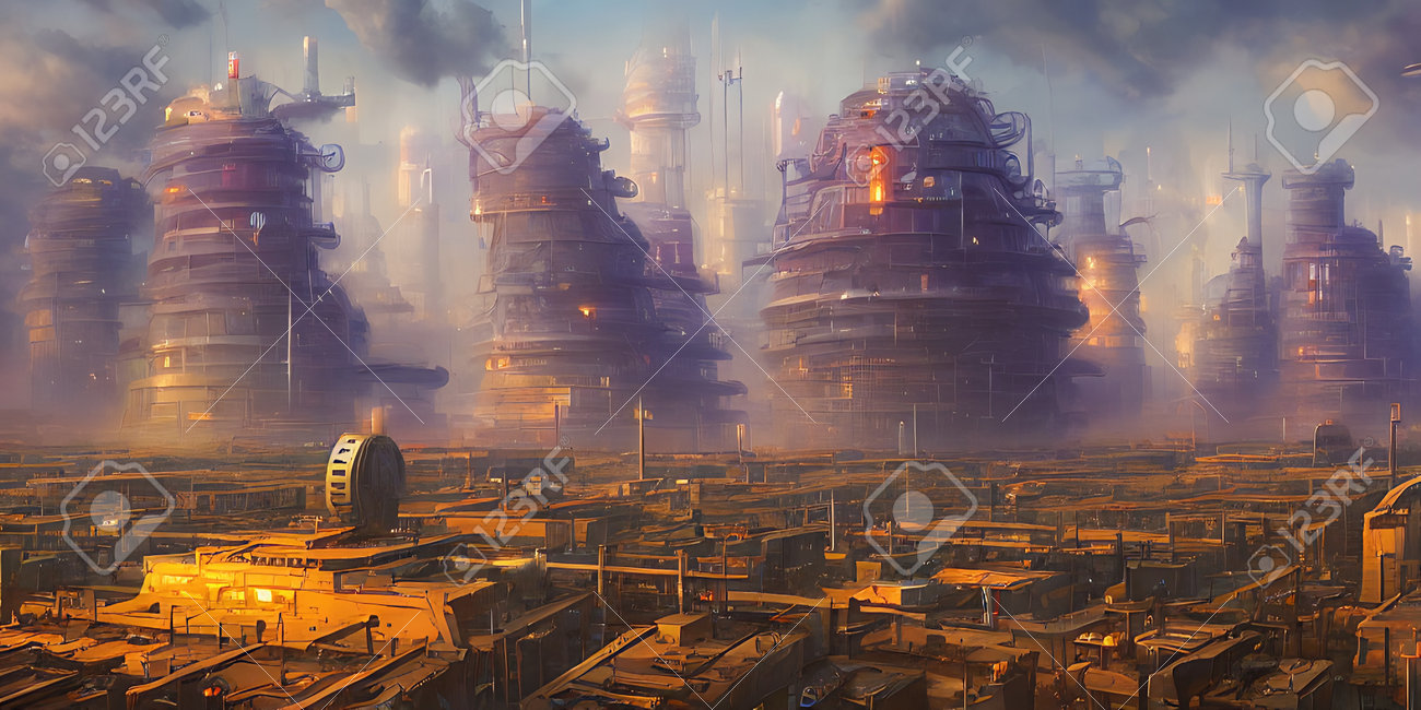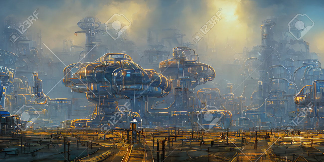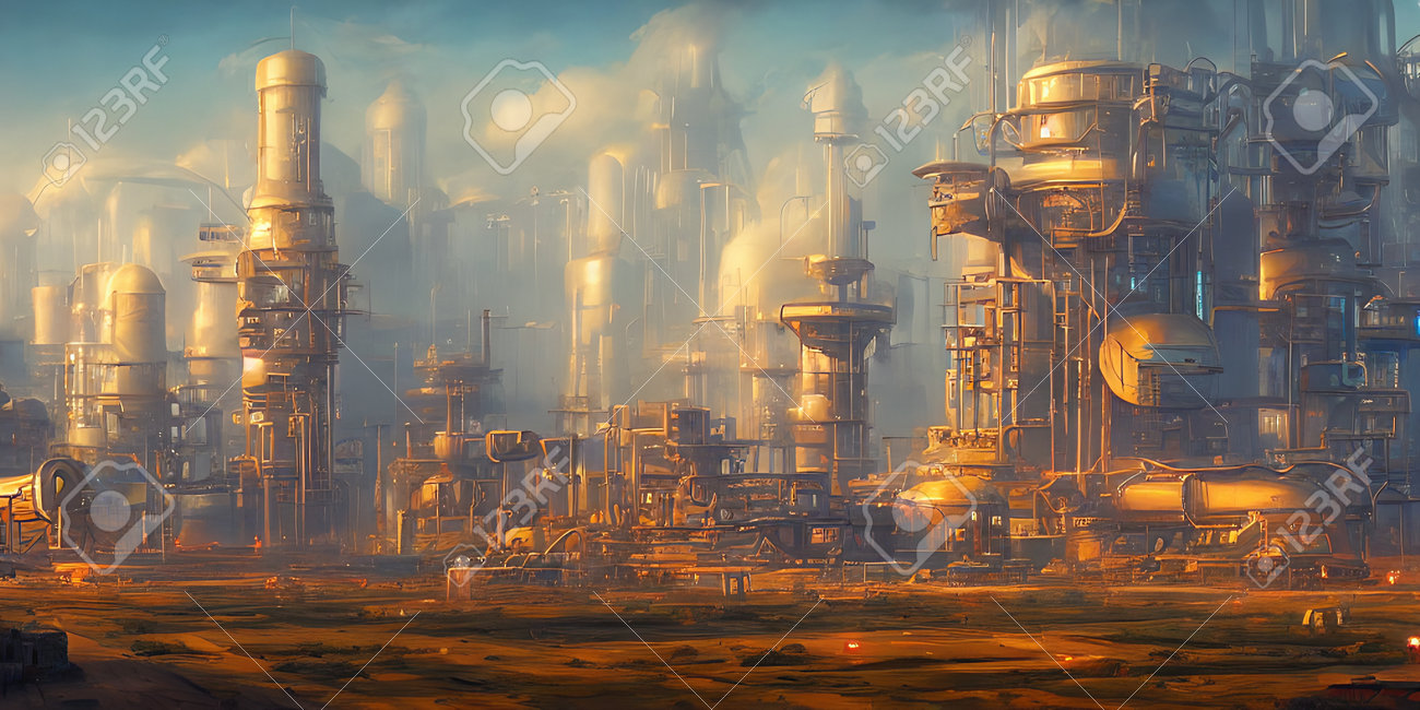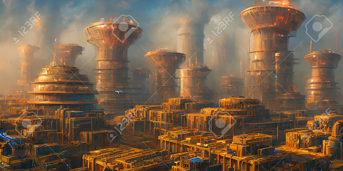Zone Industrielle, Villes Du Futur. Illustration, Art Conceptuel. Banque D'Images et Photos Libres De Droits. Image 192503880