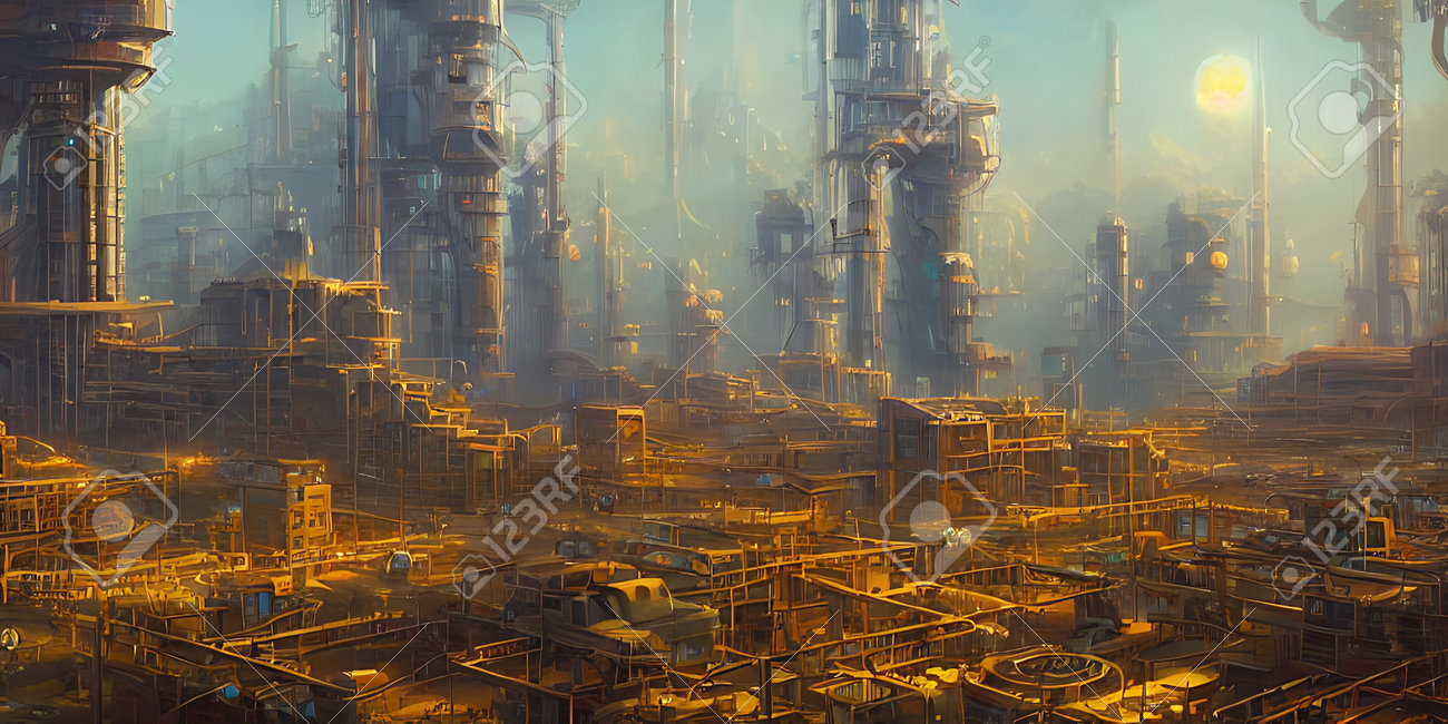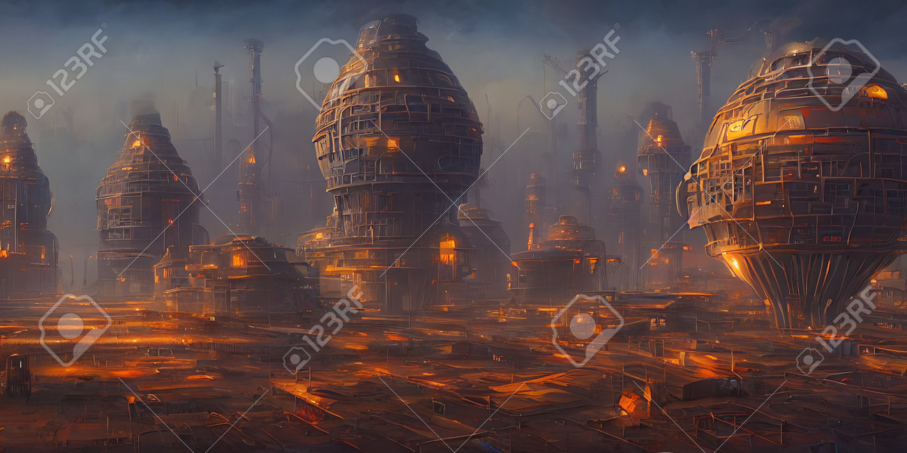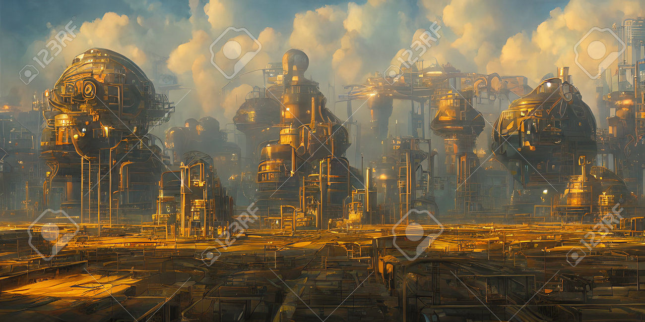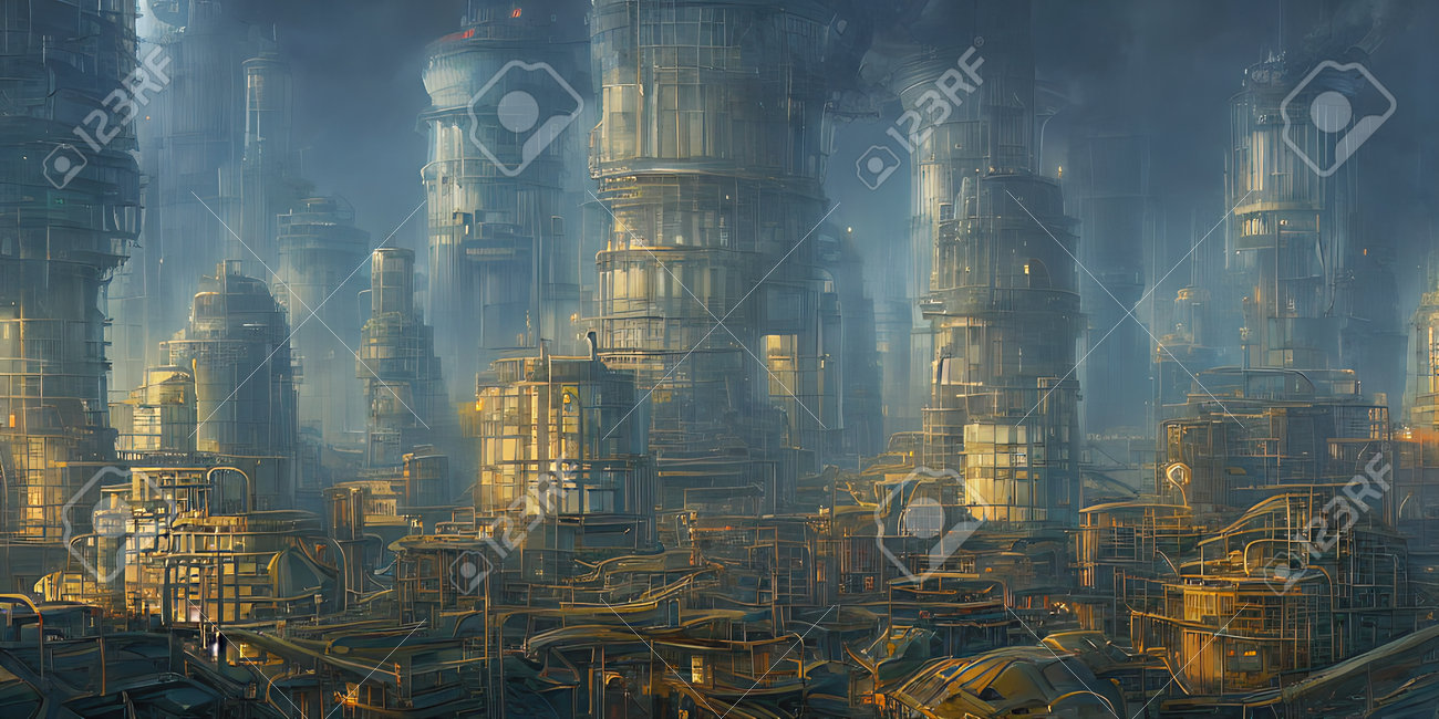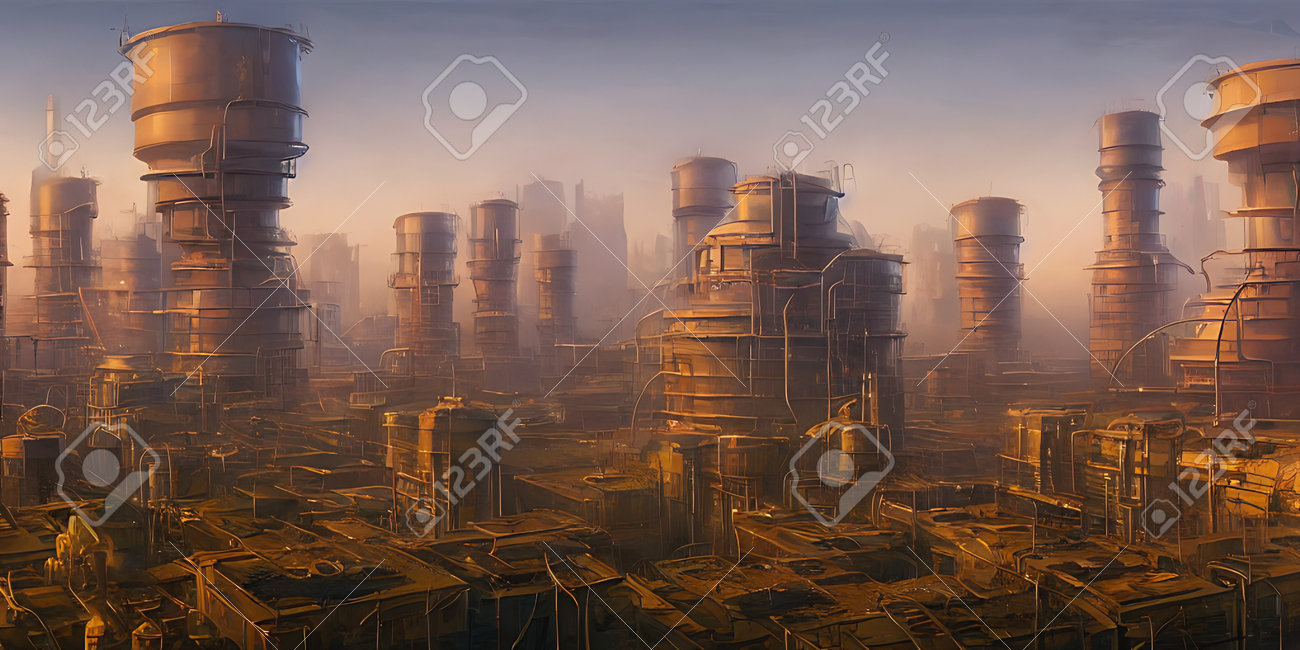 Zone Industrielle, Villes Du Futur. Illustration, Art Conceptuel. Banque D'Images et Photos Libres De Droits. Image 192503880