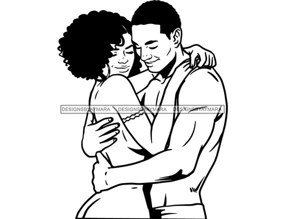 Couple Noir Homme Et Femme Amour Noir En Bw Wavy Hair Queen Relation SVG JPG PNG Vector Designs Clipart Cricut Silhouette Cutting