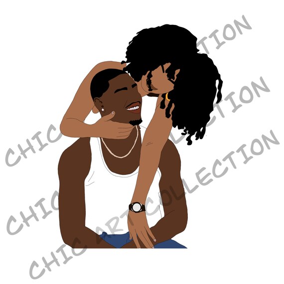 Couple noir heureux embrassant l'amour noir · Creative Fabrica