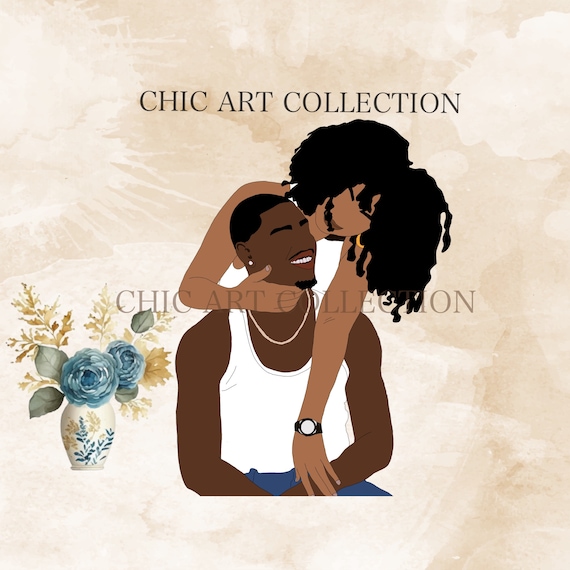 Couple noir PNG, Art couple noir, Illustration de portrait de ...