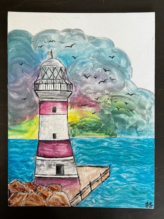 CRAYON FONDU Phare Tempête Mer Océan Fondu Crayon Art Toile idées cadeaux fait main Crayola-unique CRAYONS - Etsy France