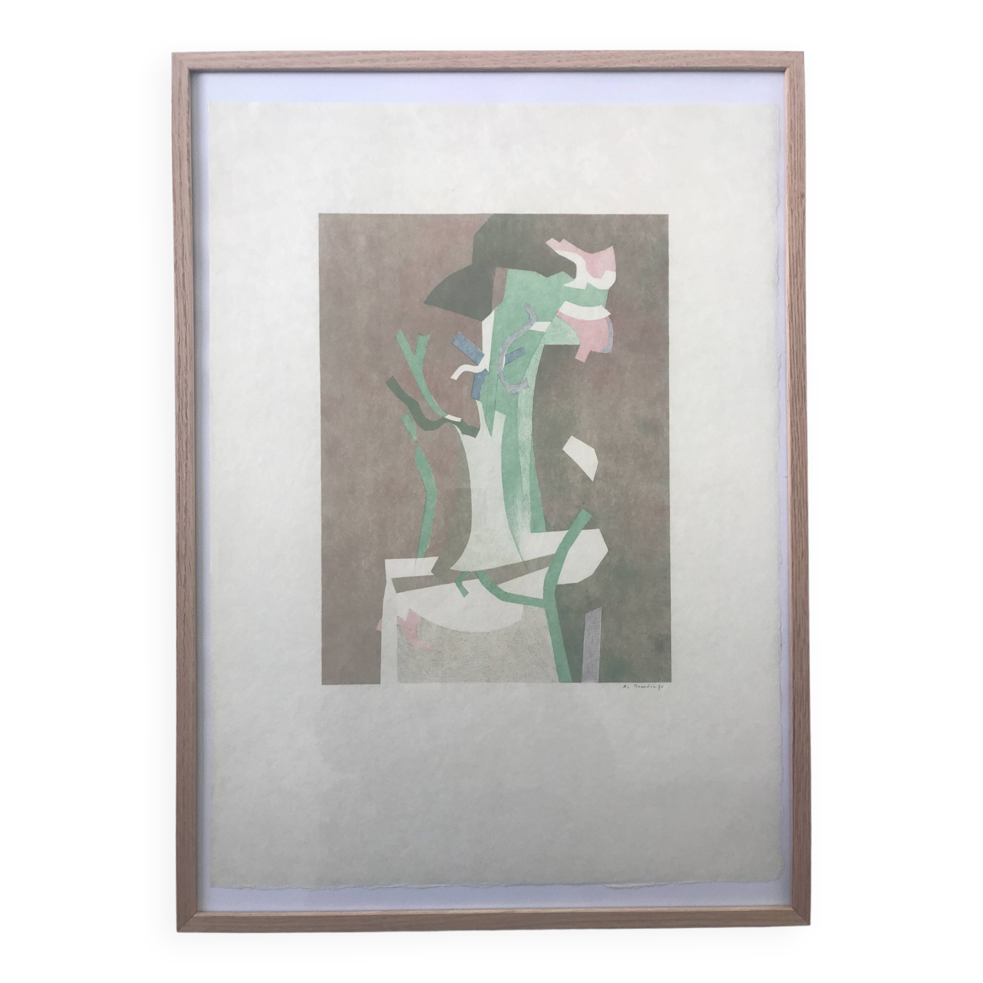 André Beaudin : Lithographie originale signée au crayon sur Japon nacré Fleurs II, 1970 | Selency