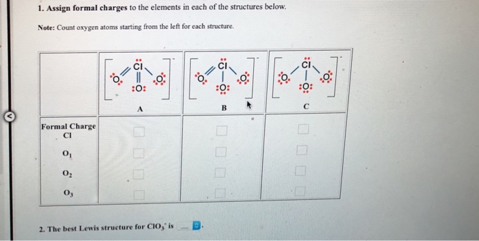 Solved 1. Assign formal charges to the elements in each of | Chegg.com