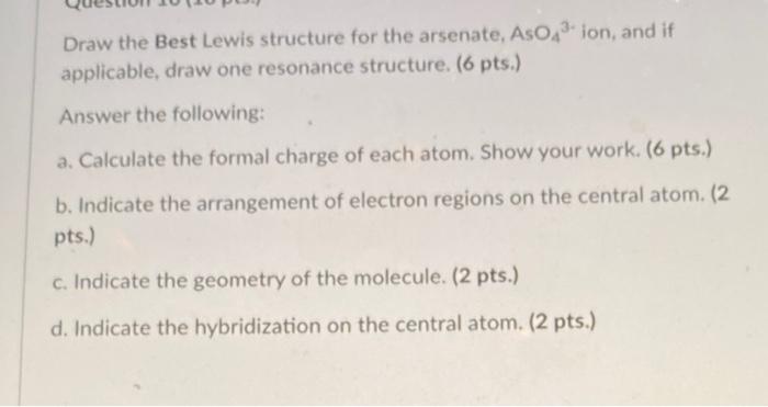 Solved Draw the Best Lewis structure for the arsenate, AsO | Chegg.com