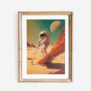 Astronaute surréaliste jouant au billard sur Mars Print Impression dart numérique Décoration murale Conception artistique rétro Impressions décoratives créatives - Etsy France