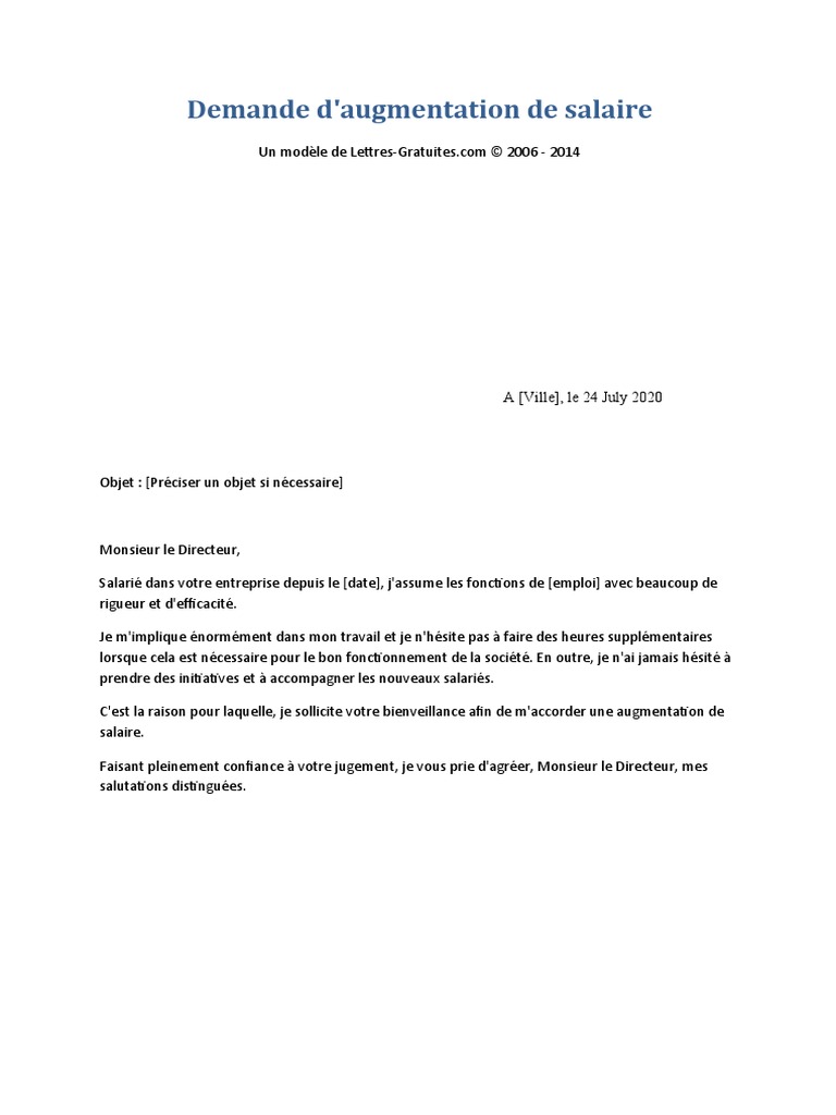 Lettre de demande d'augmentation de salaire - DOC, PDF - page 1 sur 1