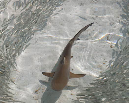 Petit bébé requin pointe noire, vue de dessus. Maldives. | Photo ...