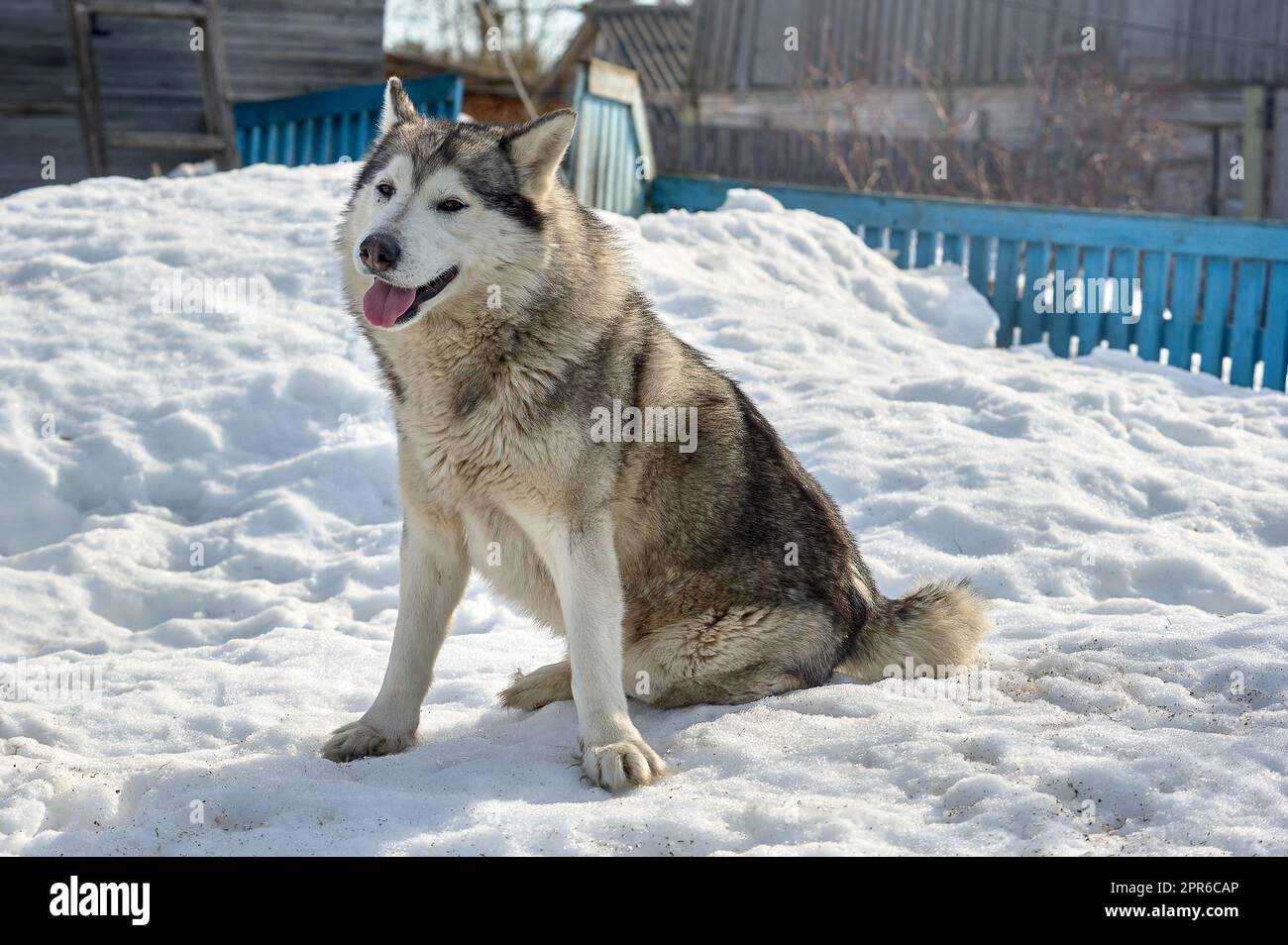 Un beau chien husky est assis dans la neige Photo Stock - Alamy