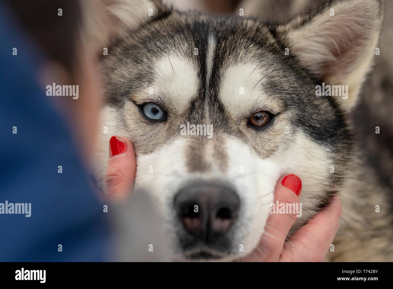 Beau chien husky à haut, yeux de couleur multi husky. Close up Photo Stock - Alamy