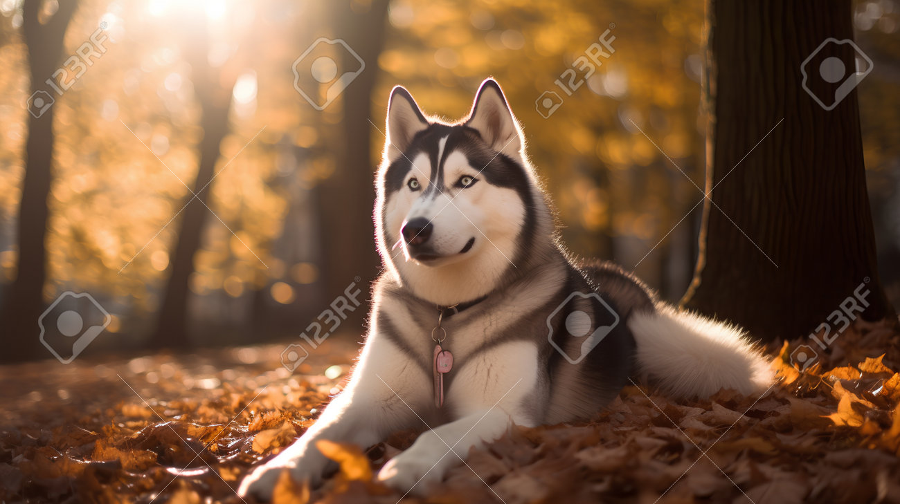 Portrait D'un Beau Chien Husky Sibérien Dans La Forêt D'automne Banque D'Images et Photos Libres De Droits. Image 204506456
