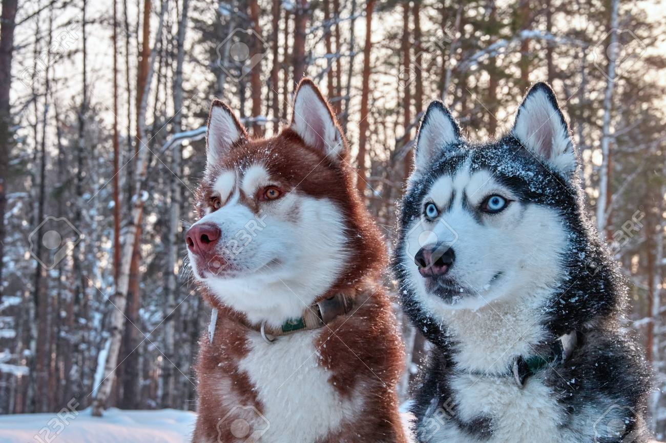 Deux Beaux Husky. Beau Portrait Pour La Conception De Style De Vie. Portrait Beau Husky Sibérien Mignon. Portrait De Beau Chien Husky. Banque D'Images et Photos Libres De Droits. Image 96514641