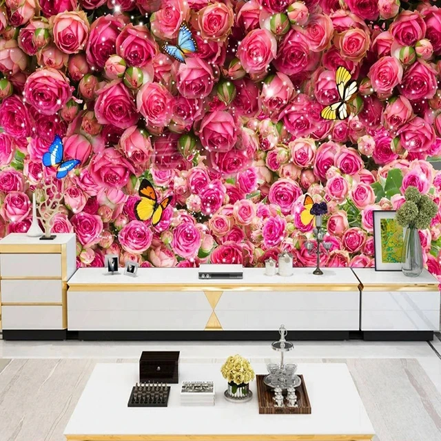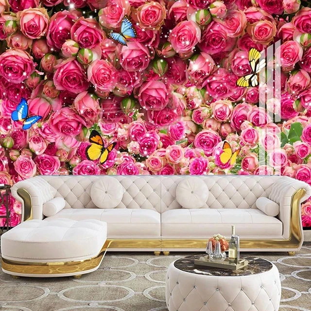 Papier peint Photo personnalisé moderne 3D, beau jardin De roses, fresque romantique, décoration De maison, salon chambre à coucher - AliExpress