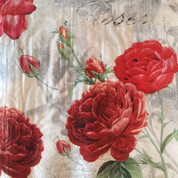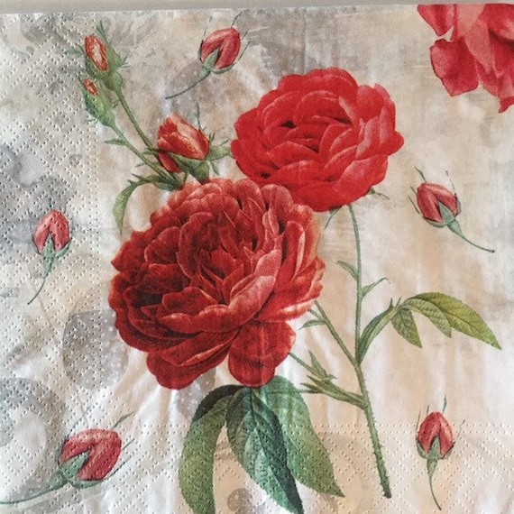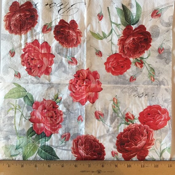 3 serviettes de découpage, beau motif de jardin de roses rouges 13 x 13 déplié - Etsy France