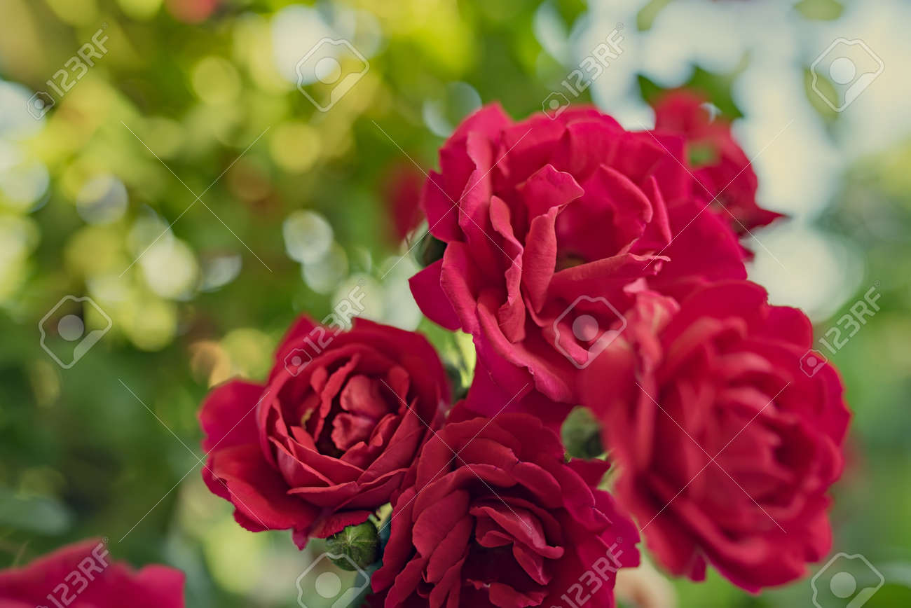 Beau Jardin De Rose De Rouge Au Printemps Fleur Splendide Et Romantique Photo stock - Image du abstrait, fond: 104763468