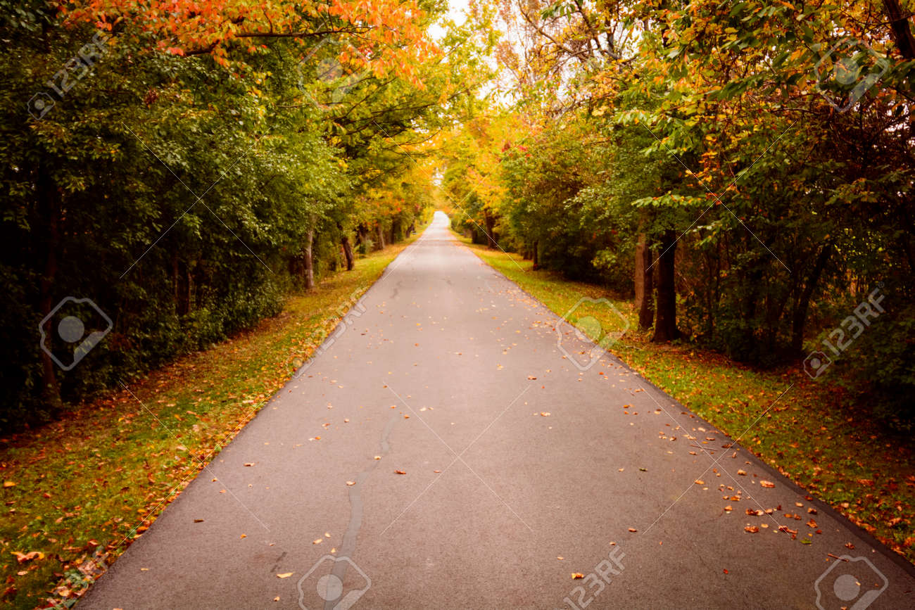 Une Belle Route De Campagne À Voie Bordée D'arbres Qui S'y Couleurs D'automne Banque D'Images et Photos Libres De Droits. Image 23338598