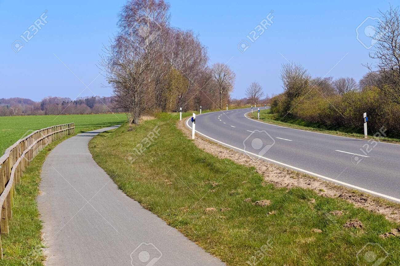 Belle Vue Sur Les Routes De Campagne Avec Champs Et Arbres Du Nord De L'europe. Banque D'Images et Photos Libres De Droits. Image 148307618