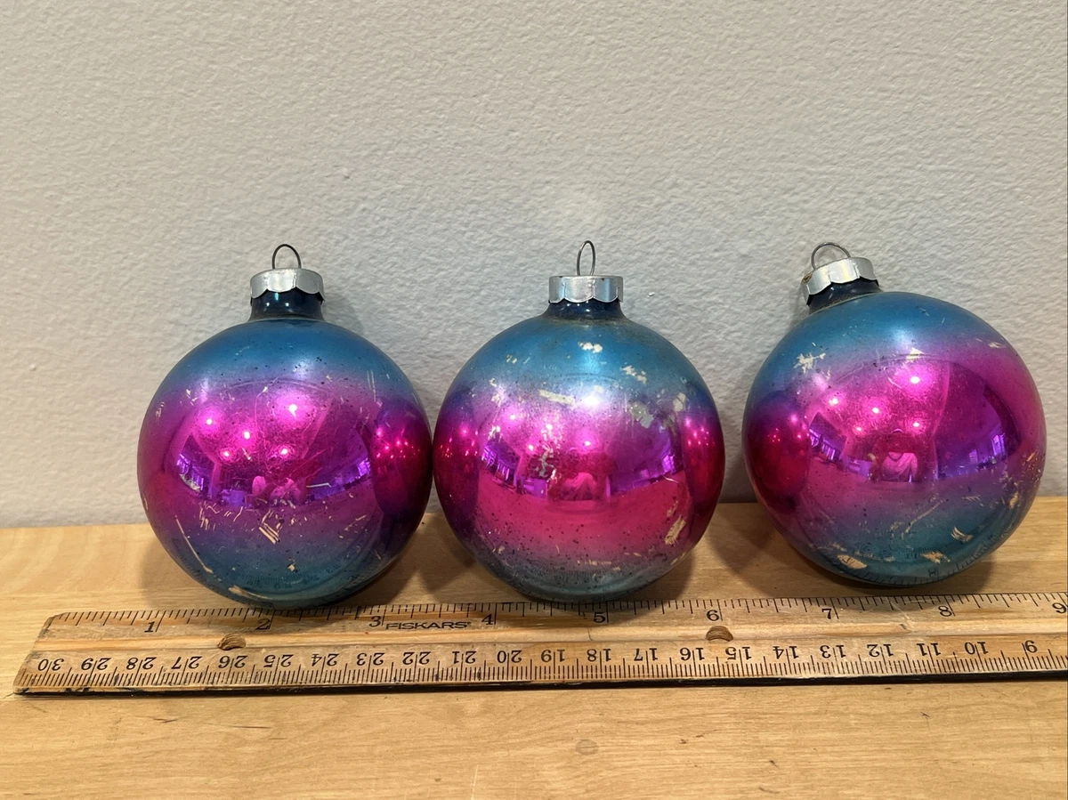 Lot of 3 VINTAGE GLASS CHRISTMAS ORNAMENTS OMBRE Aqua Blue Purple Pink FADE | eBay