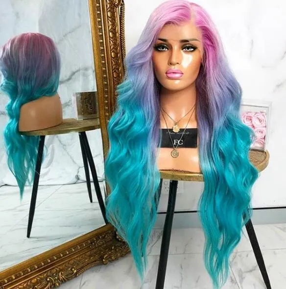 Mix Couleur Perruque Ondulée Midlle Hairline Bleu Violet Rose Synthétique Résistant À La Chaleur Cheveux Ombre Longs Cheveux Bouclés Femmes Noir Vert Parti Cosplay Du 55,43 € | DHgate