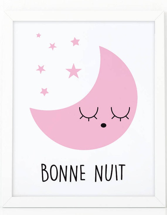 Bonne Nuit, Printable Art, Sleepy Moon, Nursery Wall Art, Good ...
