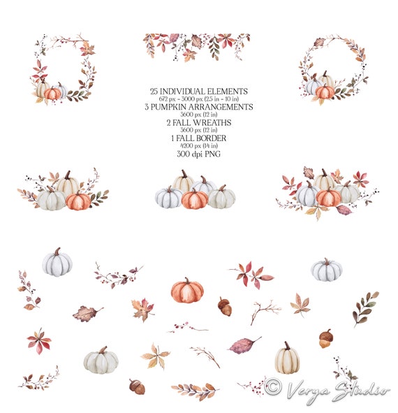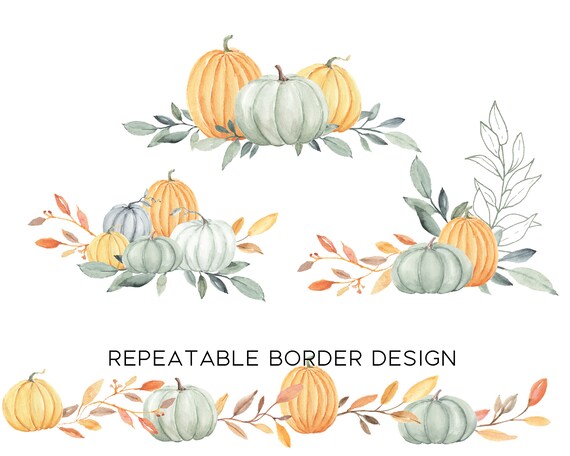 Aquarelle automne citrouilles Clipart, Boho automne récolte Clipart, Thanksgiving Clipart Floral PNG, graphiques de fleurs dHalloween, bordure de cadre de carte - Etsy Canada