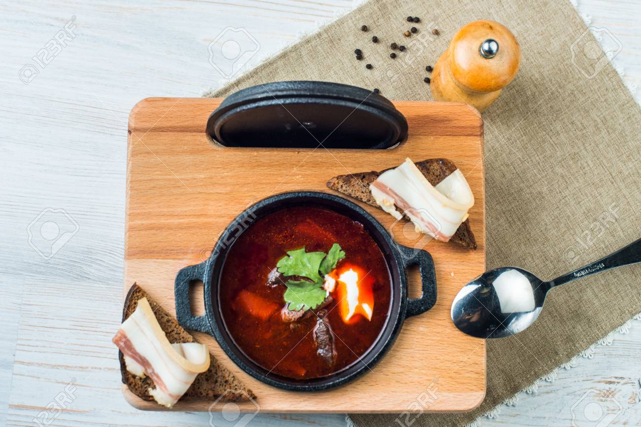 Soupe De Bortsch À La Betterave Dans Un Bol En Fonte, Un Plat Traditionnel De La Cuisine Ukrainienne.La Projection Horizontale. Banque D'Images et Photos Libres De Droits. Image 89628007