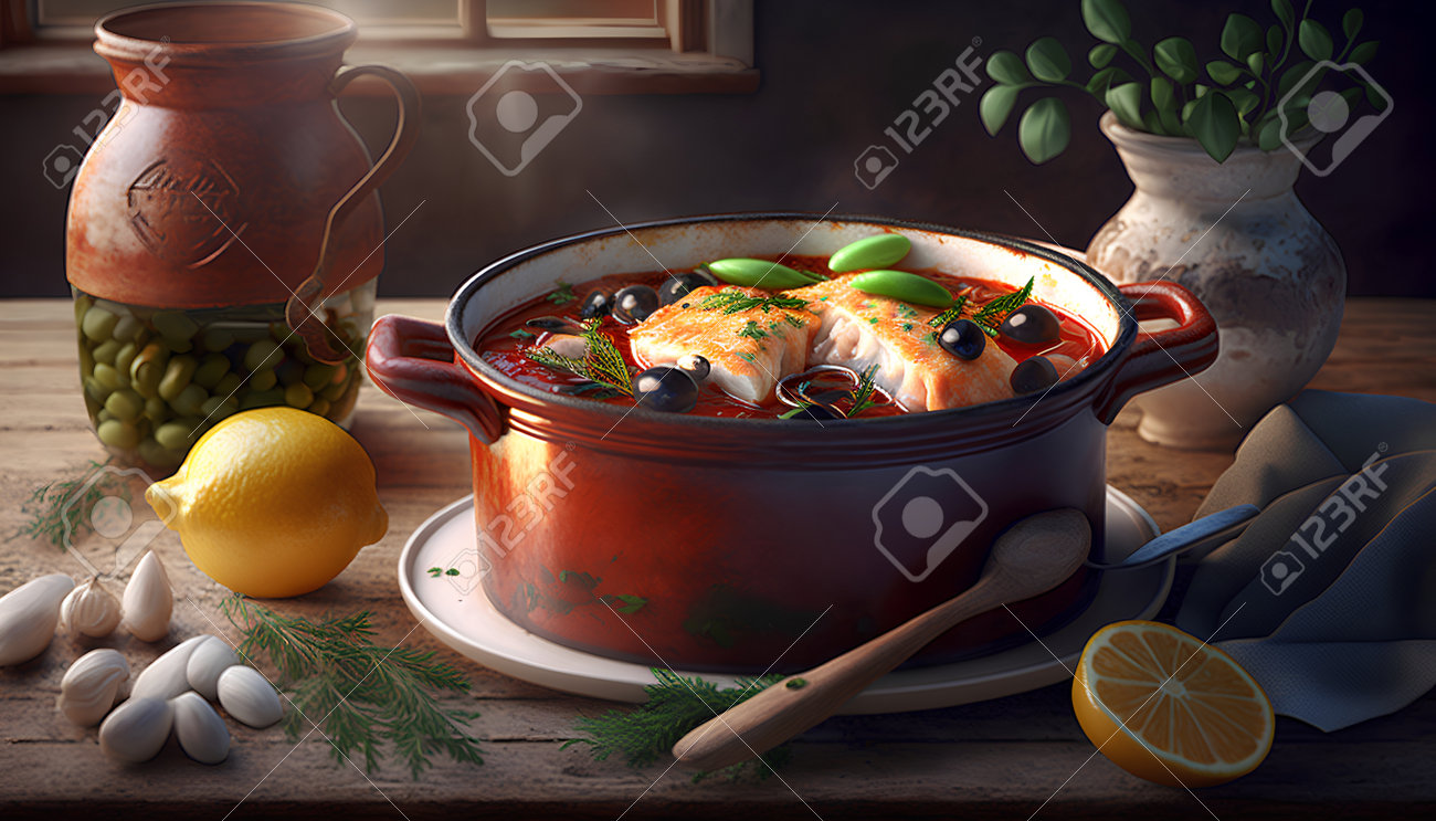Soupe Bortsch Avec Poisson Et Légumes. Cuisine Ukrainienne Traditionnelle. Image et Photographie Gratuites 199299777.