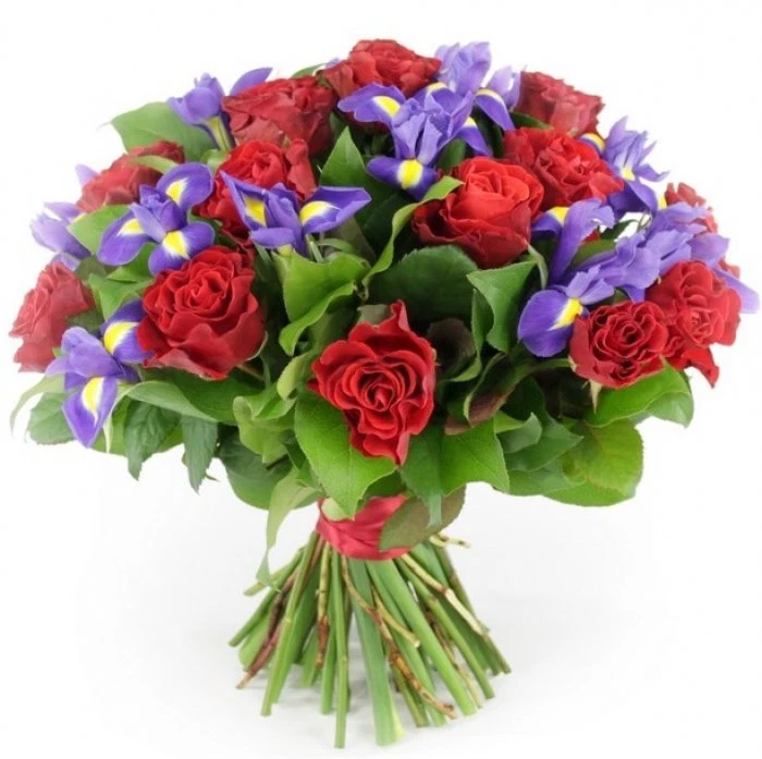 REAL FLOWERS Delivered Red ROSES Blue Iris Bouquet Free Flower Bouquet Delivery | eBay