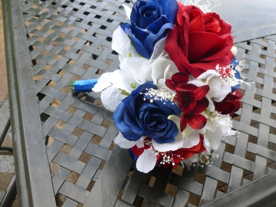 Bouqeut de mariée rouge, bleu, blanc, bouquet de drapeau américain, rouge, rose bleue, hortensia, souffle de bébé - Etsy France