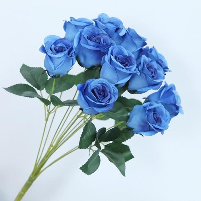 F4 - Bouquet de Roses artificielles 12 têtes, petites Roses bleu Royal, Bouquet de fausses fleurs pour fête d - Cdiscount Maison