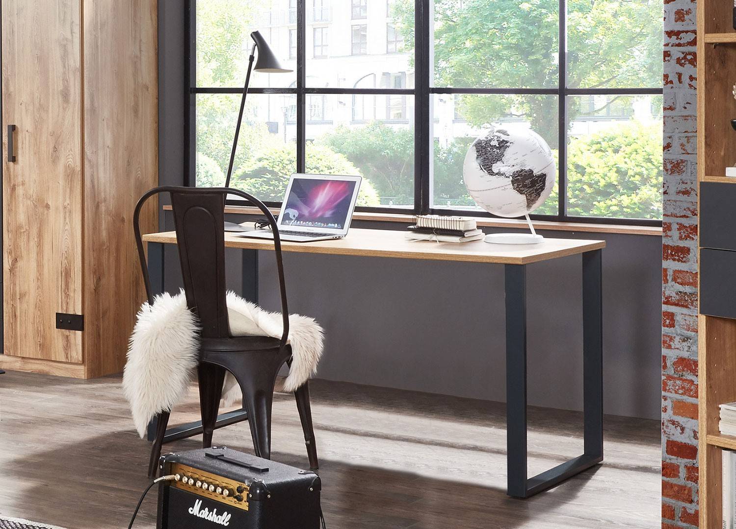 Bureau chêne wotan et anthracite avec 2 tiroirs