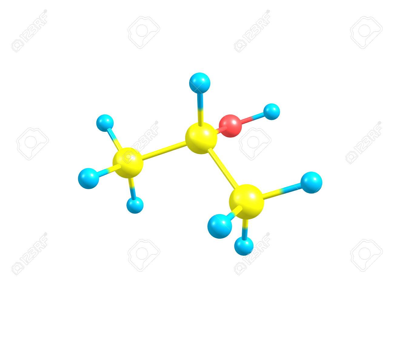 Изопропиловый Спирт Или Изопропанол Представляет Собой Химическое Соединение С Молекулярной Формулой C3H8O. Это Бесцветная, Легковоспламеняющаяся Химическое Соединение С Сильным Запахом. 3d Иллюстрации Фотография, картинки, изображения и сток ...