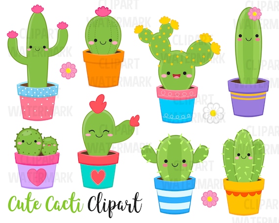 Cactus Clipart, Kawaii Cactus Clipart, Cute Cacti Clipart, Plants Clipart, Potted Plants, Flowers Clipart, PNG, SVG and Commercial Use - Etsy